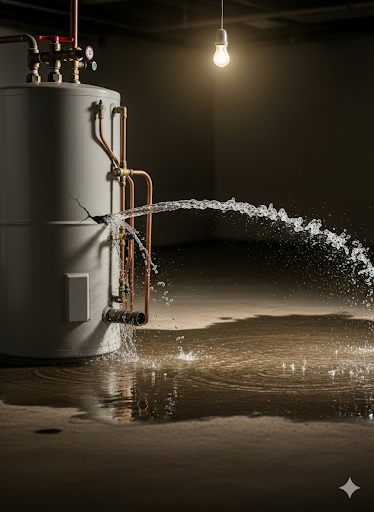 Leaks can show up in several ways, each pointing to a different cause. Water at the top of the cylinder often comes from loose joints, corroded pipes, or a malfunctioning temperature pressure relief valve. These are generally repairable by a qualified plumber.